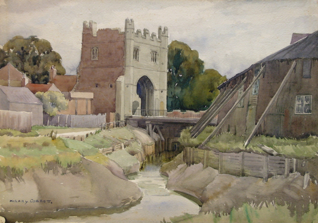 Hilary Dulcie Cobbett (1885-1976) was a watercolour painter, daughter of the landscape and architectural painter William V. H. Cobbett. She studied and lived in Richmond, Surrey. She became an Associate of the Society of Women Artists in 1937. She exhibited, amongst others, at the Royal Academy (5), the Royal Society of British Artists (2), and the Royal Institute of Painters in Water Colours (14). In the period 1928-1965 she exhibited 60 paintings at the annual exhibitions of the Society of Women Artists.