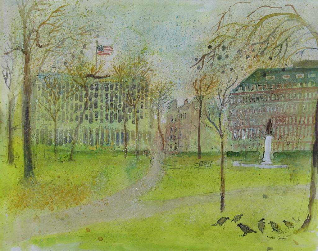 A pen, ink and watercolour measuring 15” x 19”. Signed Nina Carroll.
