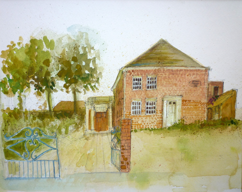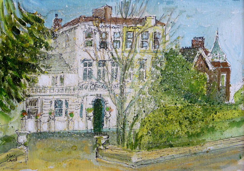 A pen, ink and watercolour measuring 6½” x 9”. Signed Nina Carroll. Inscribed in pencil verso: ‘White house at Datchet’. Label verso: Century Galleries, Henley on Thames, Oxfordshire.